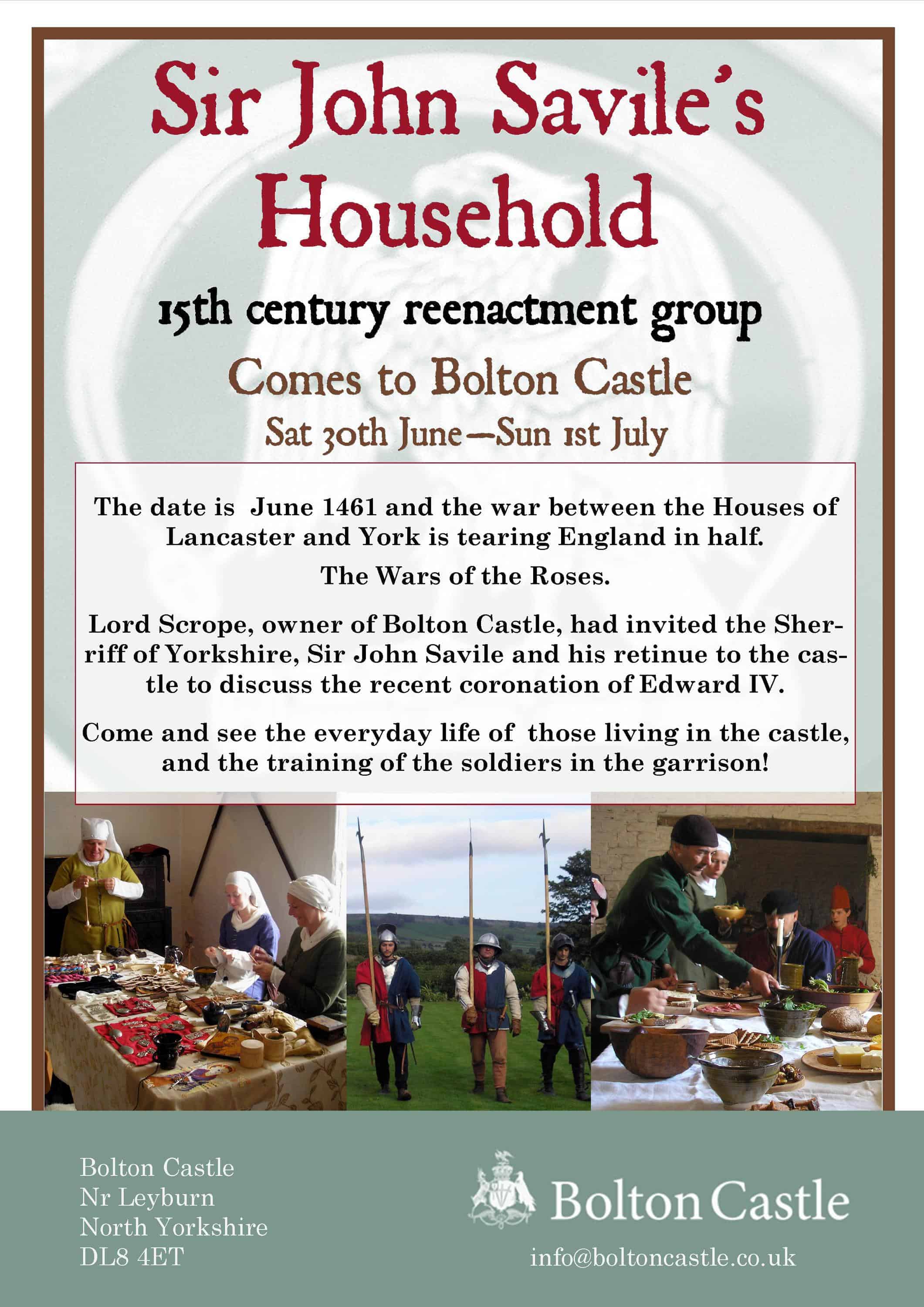 15c re-enactment event Sunday 1st July at Bolton Castle